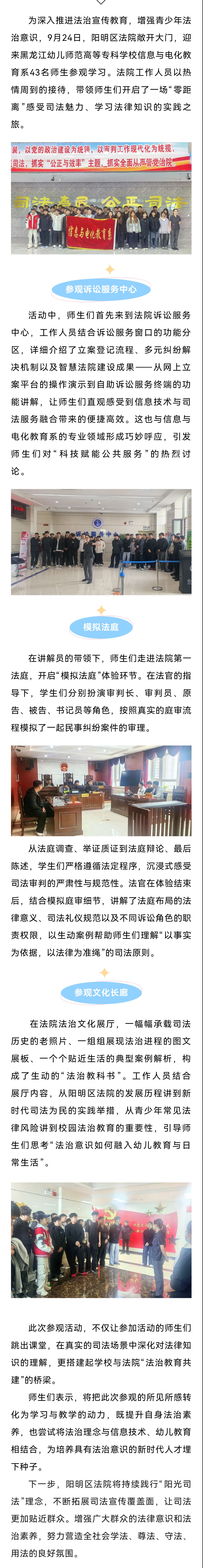 【第245次公众开放日】“零距离”感受司法魅力——黑龙江幼儿师范高等专科学校同学打卡法院!