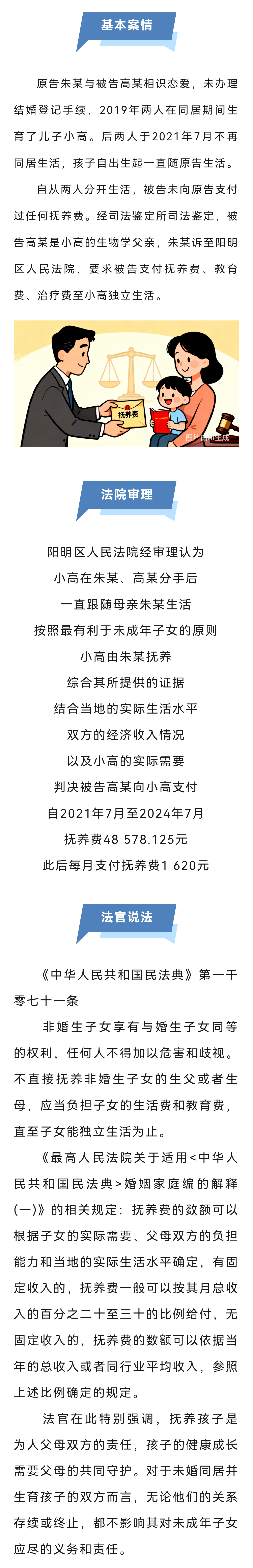 非婚生子女的抚养费由谁出?阳明区人民法院判了