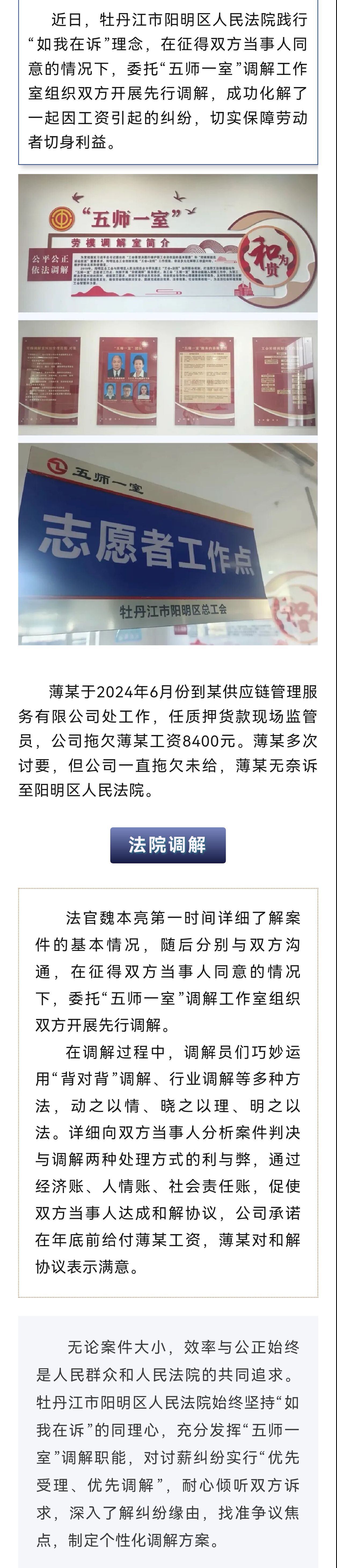 阳明区人民法院“五师一室”助力化解工资纠纷
