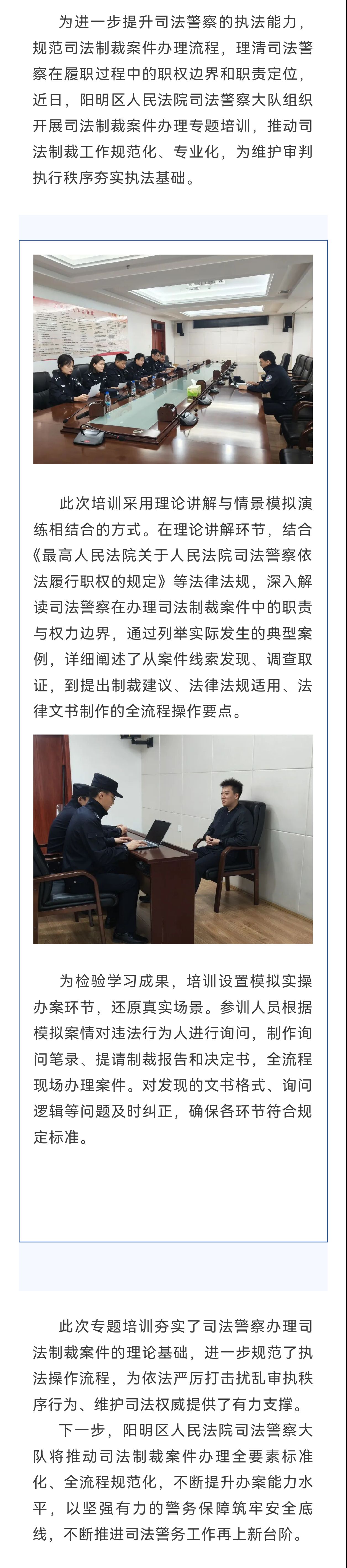 阳明区人民法院司法警察大队开展司法制裁案件办理专题培训 筑牢执法规范防线