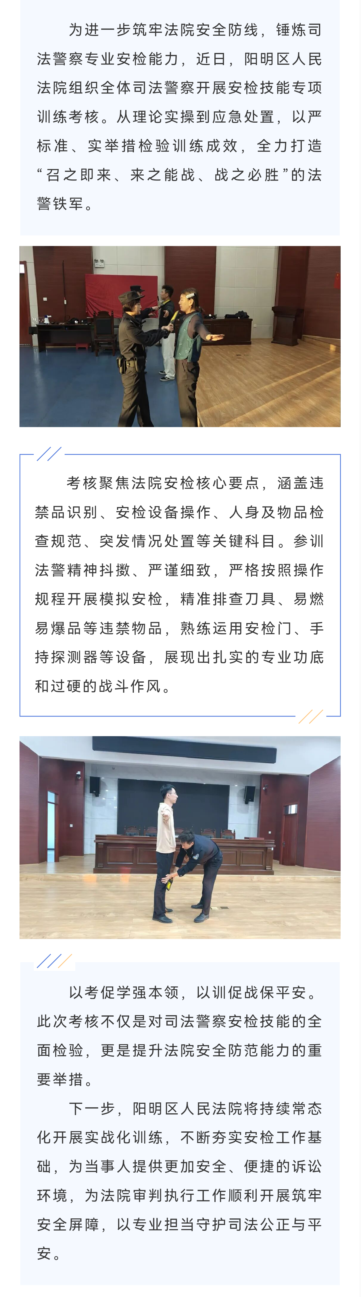 以练为战强技能 严考促训铸尖兵——阳明区人民法院司法警察开展安检训练考核