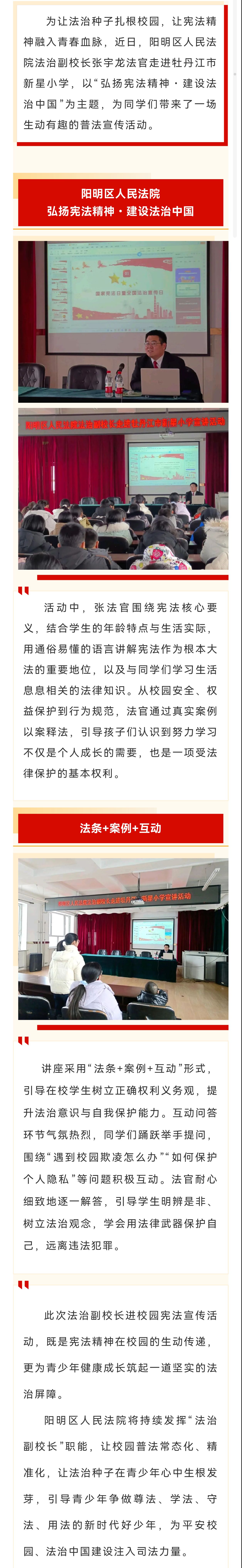 “宪”在行动 护“未”成长——阳明区人民法院开展法治副校长进校园活动