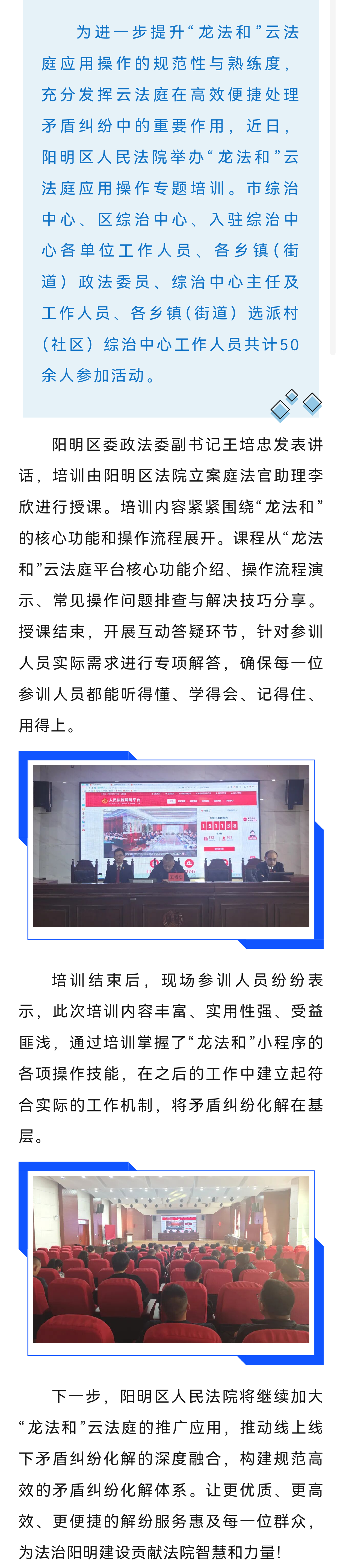 阳明区人民法院召开“龙法和”云法庭应用操作专题培训会