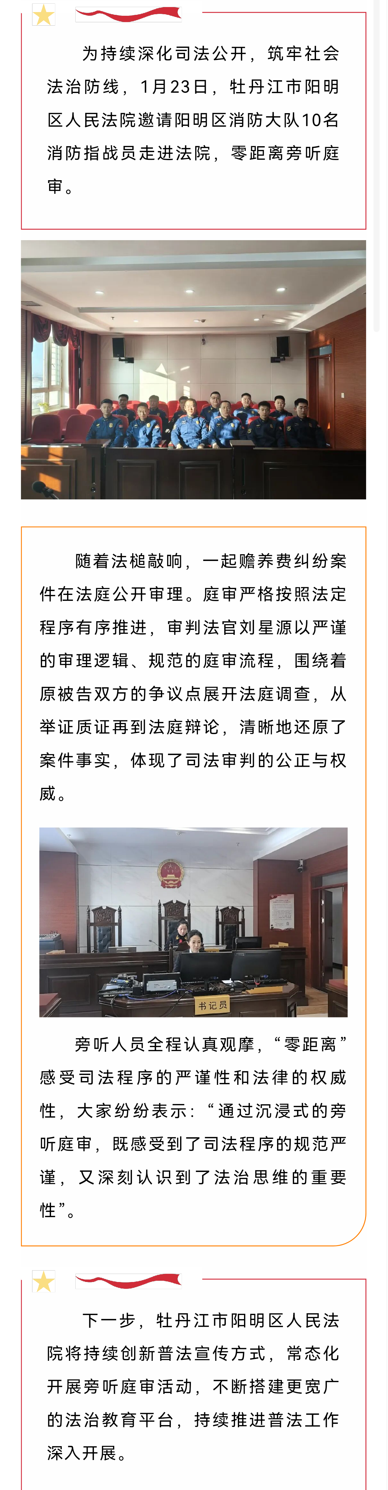 以案为镜 旁听庭审——消防队员走进阳明区人民法院 零距离感受司法威严
