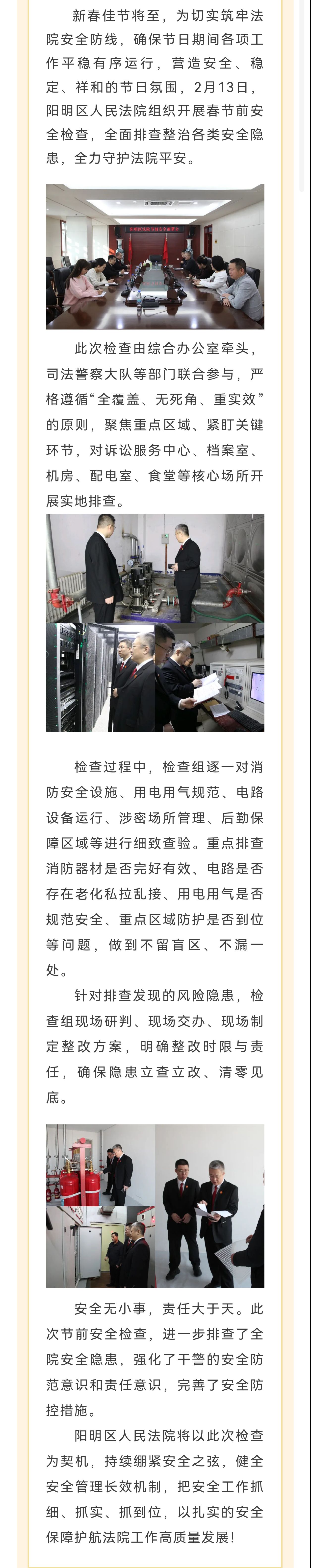 排查安全隐患 守护祥和新春——阳明区人民法院开展节前安全检查