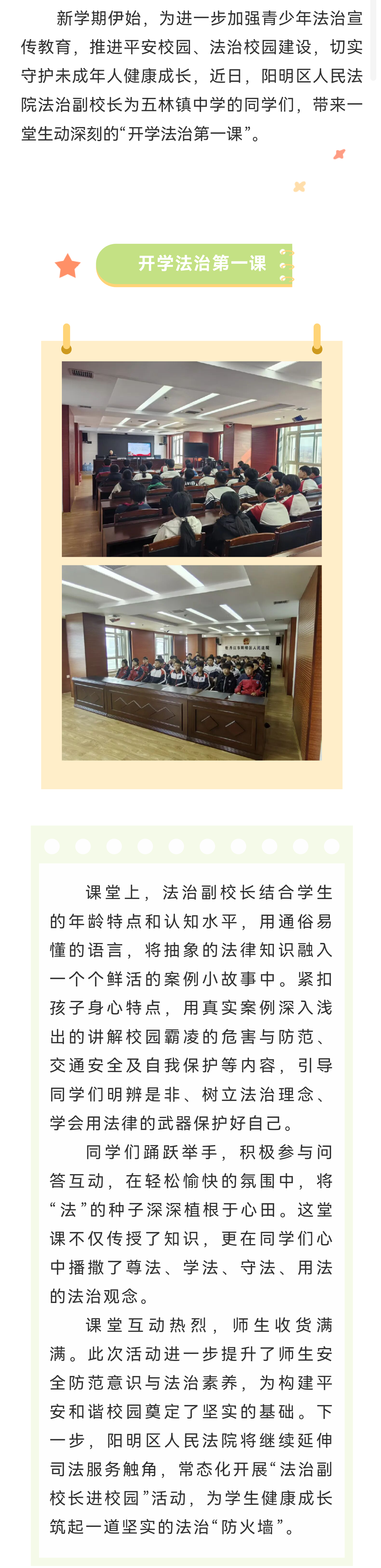 法润校园 守护成长——阳明区人民法院“开学第一课”开讲啦!