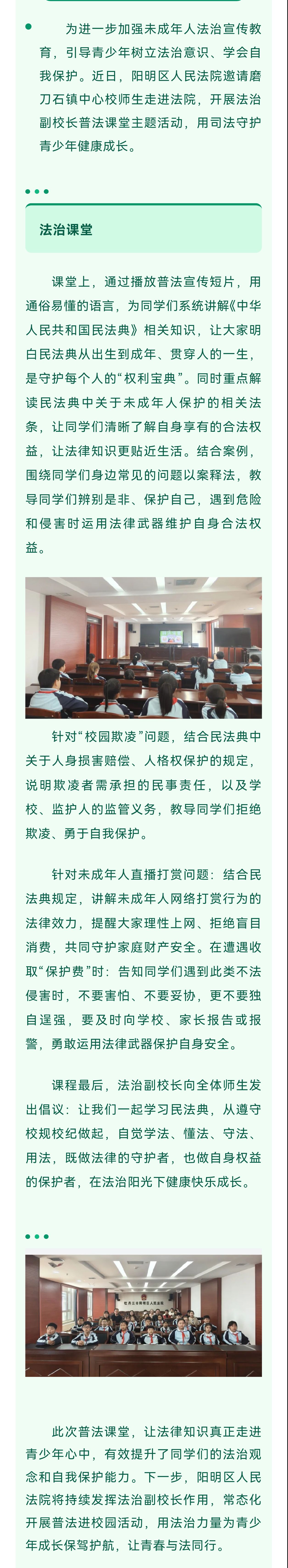 法治副校长 守护少年的你——阳明区人民法院普法课堂开讲